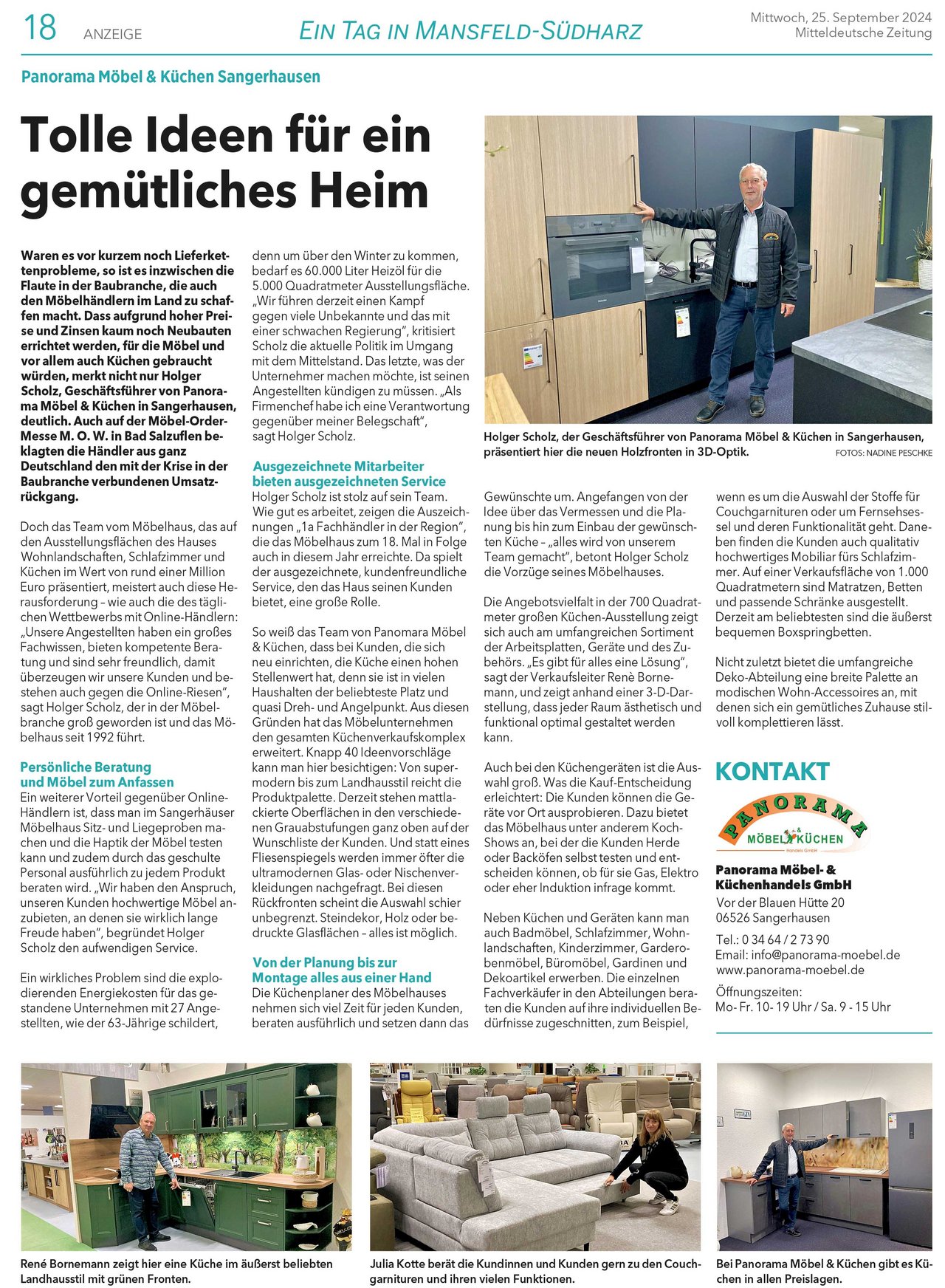 Das Unternehmen Panorama Möbel in Frankenhausen wurde gegründet. Moderne Möbel und Küchen zu fairen Preisen und eine exzellente Beratung stehen seitdem im Fokus des Möbelhauses, das von Inhaber Holger Scholz geführt wird.